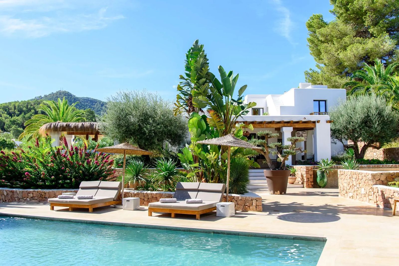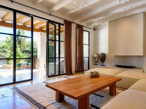 Can Rumani is a beautifully renovated villa that blends traditional finca elements, such as authentic wooden beams, with refined contemporary design. Located just 2 km from San José and within 10 km of some of Ibiza’s most renowned beaches, including Cala Bassa and Cala Tarida, this private estate offers a five-star living experience enhanced by advanced home automation.