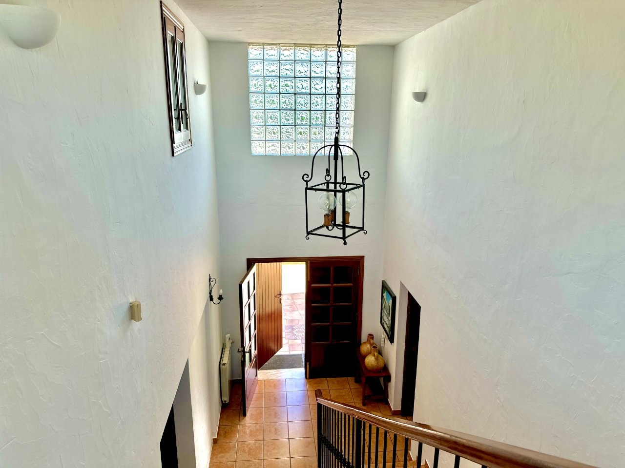 La propiedad cuenta con un gran jardín con una amplia piscina, una cocina al aire libre y vistas abiertas al paisaje circundante. Estas vistas abiertas dan una sensación de tranquilidad y amplitud, a pesar de que la casa está situada en el centro del pueblo.