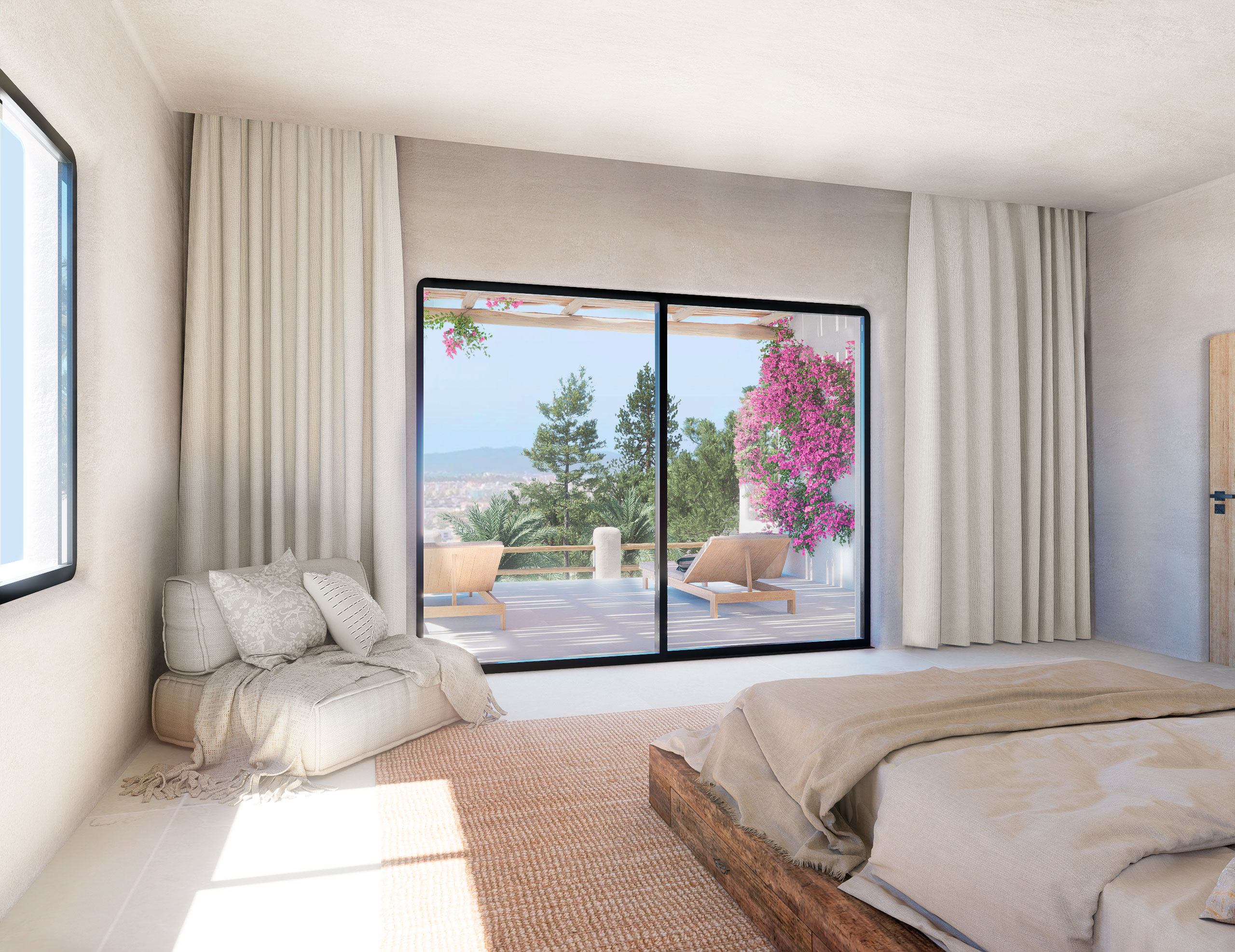 • Impresionantes vistas al mar, las montañas circundantes, la ciudad de Ibiza, Marina Botafoch y la lejana Formentera