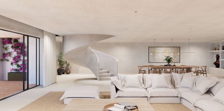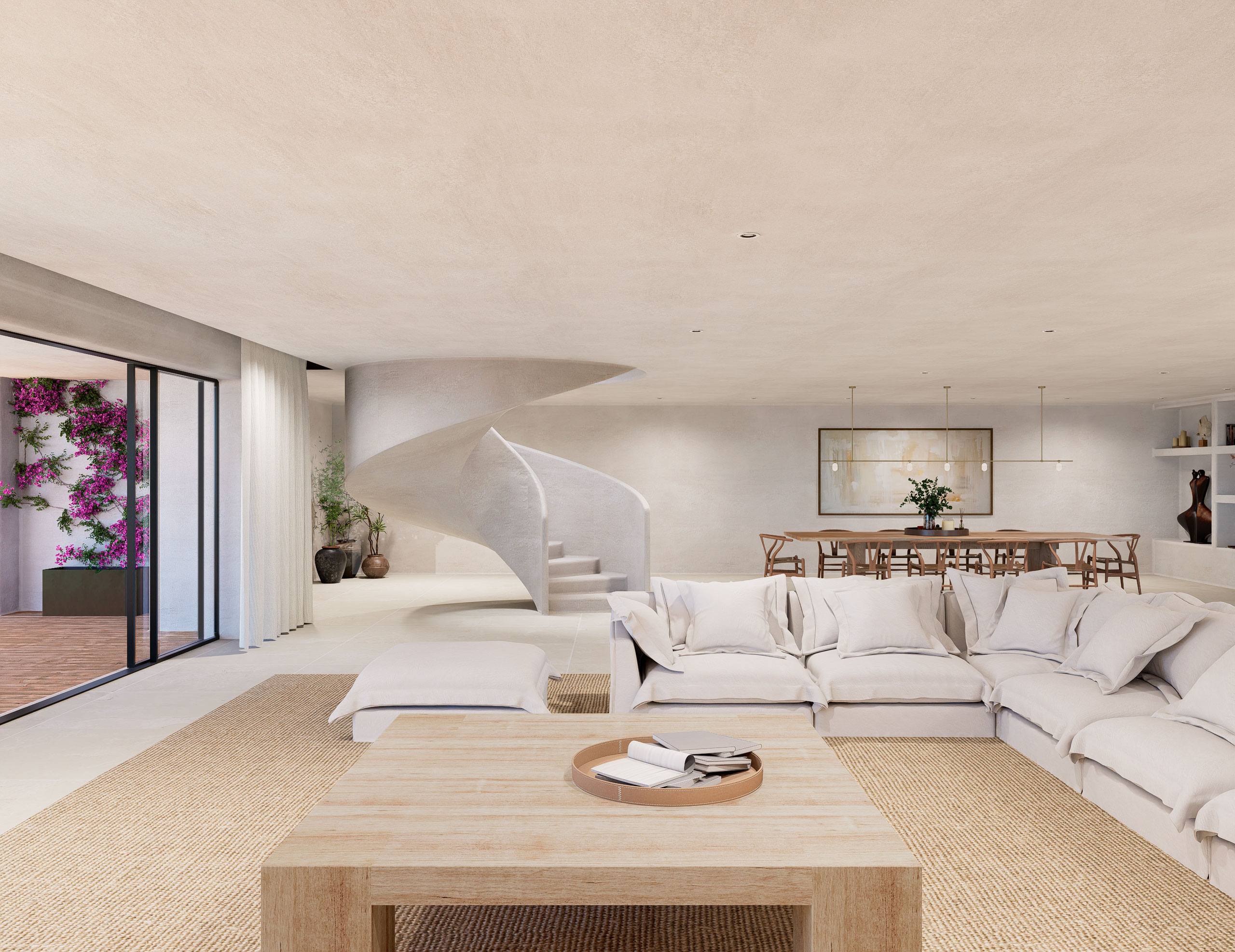 Distribuida en cinco niveles, Ca des Mirador está diseñada cuidadosamente para ofrecer una transición fluida entre los espacios interiores y exteriores. Ya sea relajándose en la zona de bienestar, entreteniendo a los invitados junto a la piscina o contemplando la puesta de sol desde una terraza, esta casa ofrece un estilo de vida inigualable, lleno de privacidad, elegancia y una belleza impresionante.