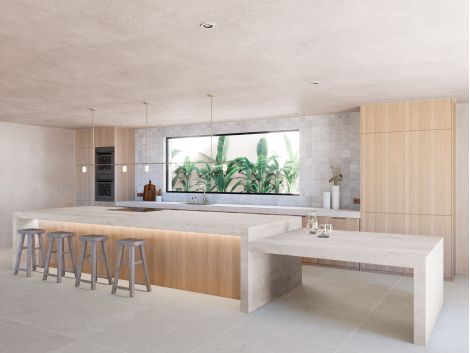 • Cocina de planta abierta conectada con elegantes zonas de estar y comedor