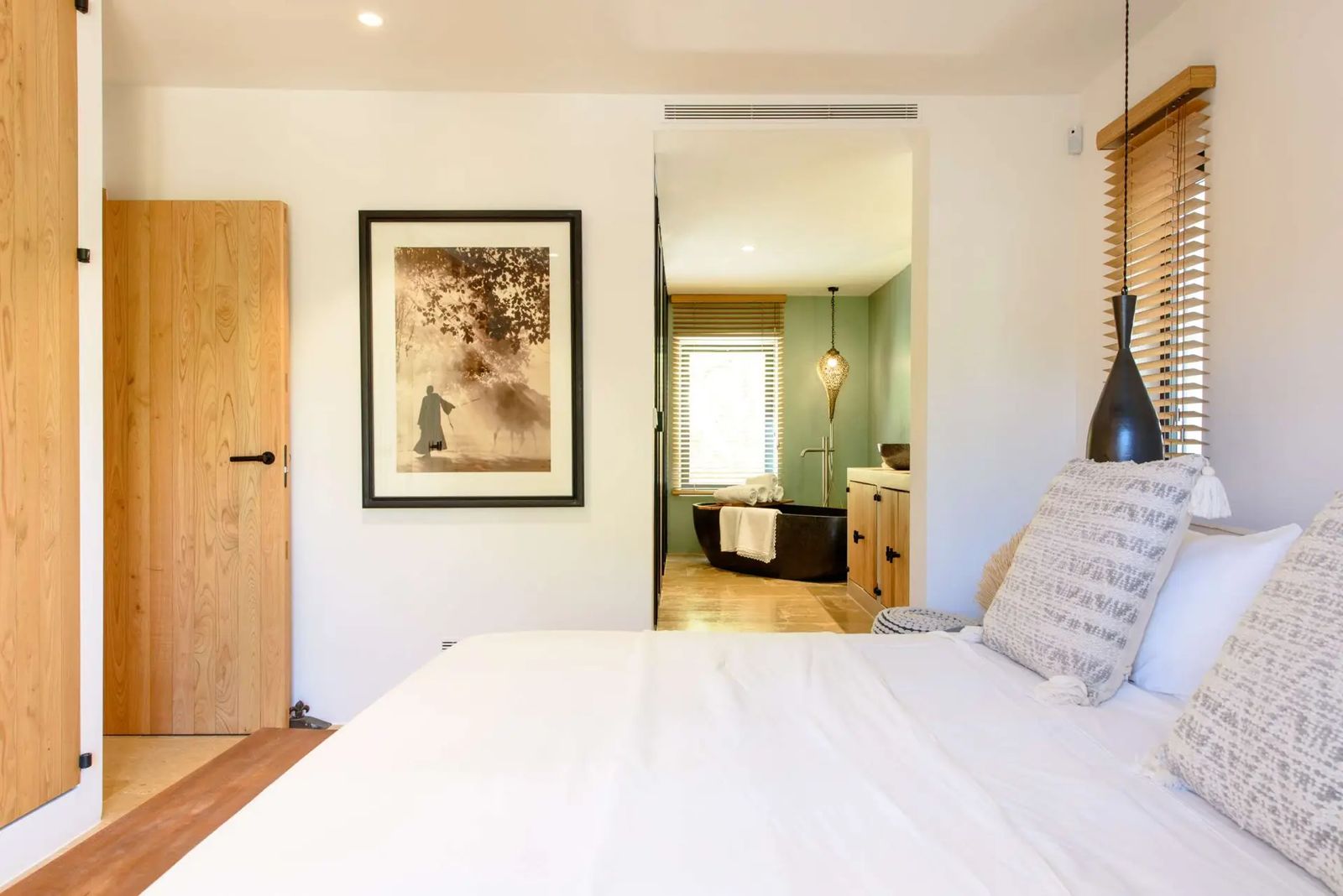 Located next to the pool, it offers three additional en-suite bedrooms. Two are situated on the ground floor with direct access to the terrace, while the third is on the upper floor and includes a private fridge and balcony.