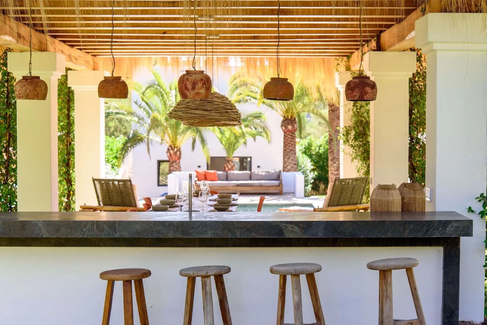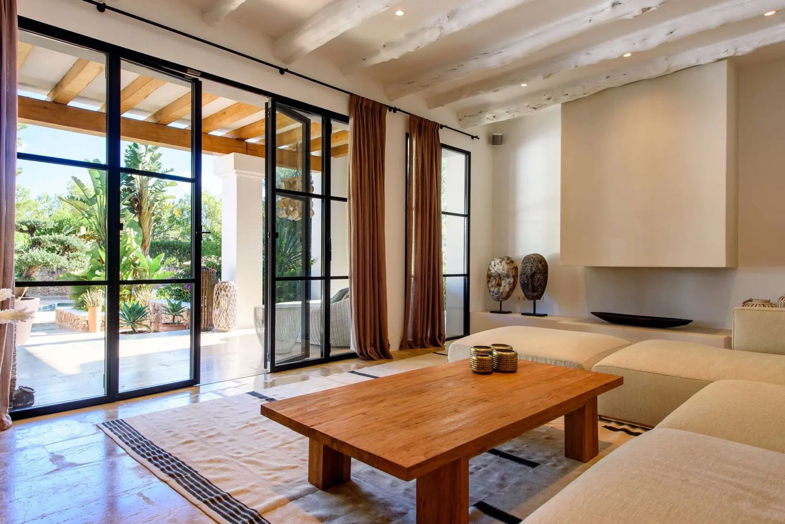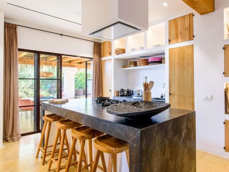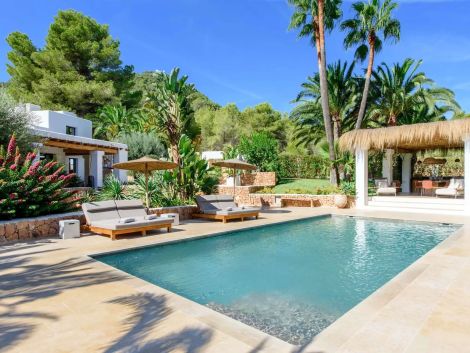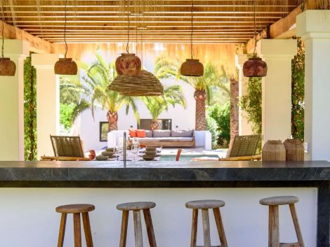 Can Rumani is a beautifully renovated villa that blends traditional finca elements, such as authentic wooden beams, with refined contemporary design. Located just 2 km from San José and within 10 km of some of Ibiza’s most renowned beaches, including Cala Bassa and Cala Tarida, this private estate offers a five-star living experience enhanced by advanced home automation.